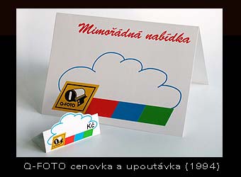 Cenovka (výsek a ohyb - provedeny 3 velikosti) a upoutávka na mimořádné nabídky v prodejnách Q-FOTO.