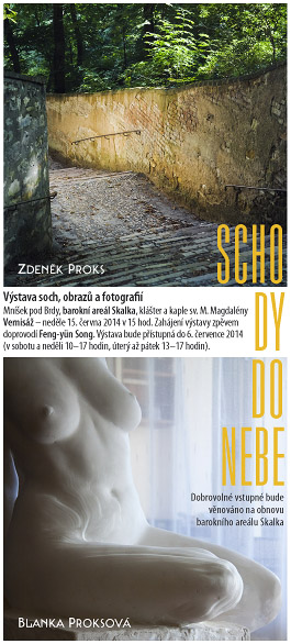 Ve dnech 25. 6. 2014 – 6. 7. 2014 jsme uskutečnili společnou výstavu soch, obrazů a fotografií v barokním areálu Skalka v Mníšku pod Brdy. Pro instalaci jsme využili oba prostory, které dává město Mníšek pod Brdy k dispozici, sál bývalého kláštera a prostor kostelíku sv. Máří Magdalény. Radost nad krásným prostorem i vstřícným přístupem nám trochu pokazila skutečnost, že týden po vernisáži Blanka musela obhajovat svou instalaci v odsvěceném kostelíku sv. Máří Magdalény a při likvidaci výstavy jsme zjistili, že některé sochy byly zakrývány a dvě dokonce odstraněny mimo pohled návštěvníků. Chápeme, že prostor bývalého kláštera slouží jako obřadní místnost městského úřadu, ale nechápeme komu by pohled na lidská těla mohl zkazit svatební den. Posuďte sami. INSTALACE V SÁLE KLÁŠTERA SKALKA INSTALACE V KOSTELÍKU SV. MÁŘÍ MAGDALÉNY plus |