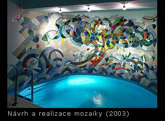 Návrh a realizace výzdoby soukromého relaxačního bazénu. Sleněná mozaika „Zahrada radosti“, 8x2,25 m. Více fotografií si můžete prohlédnout v sekci BLANKA.